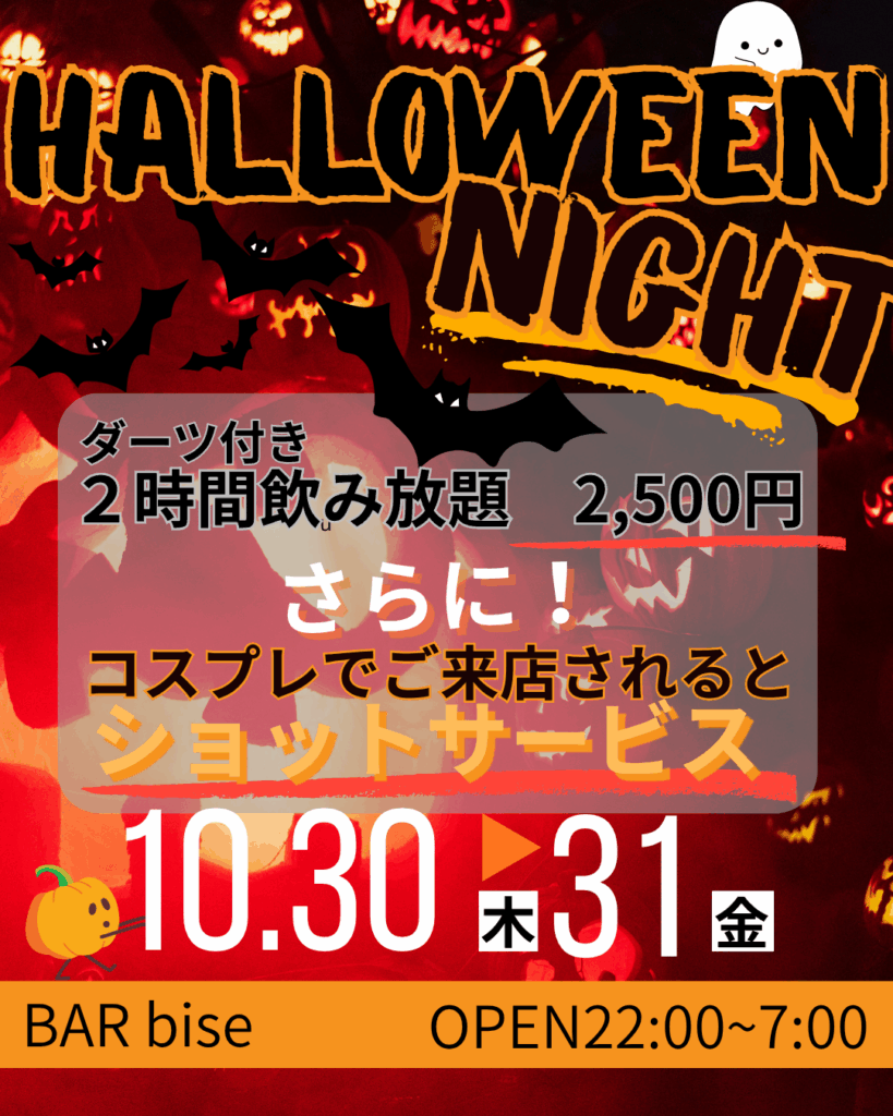 せっかくの仮装、コスプレを出来るだけ長ーく楽しむためにもbar bise にお立ち寄りください😎